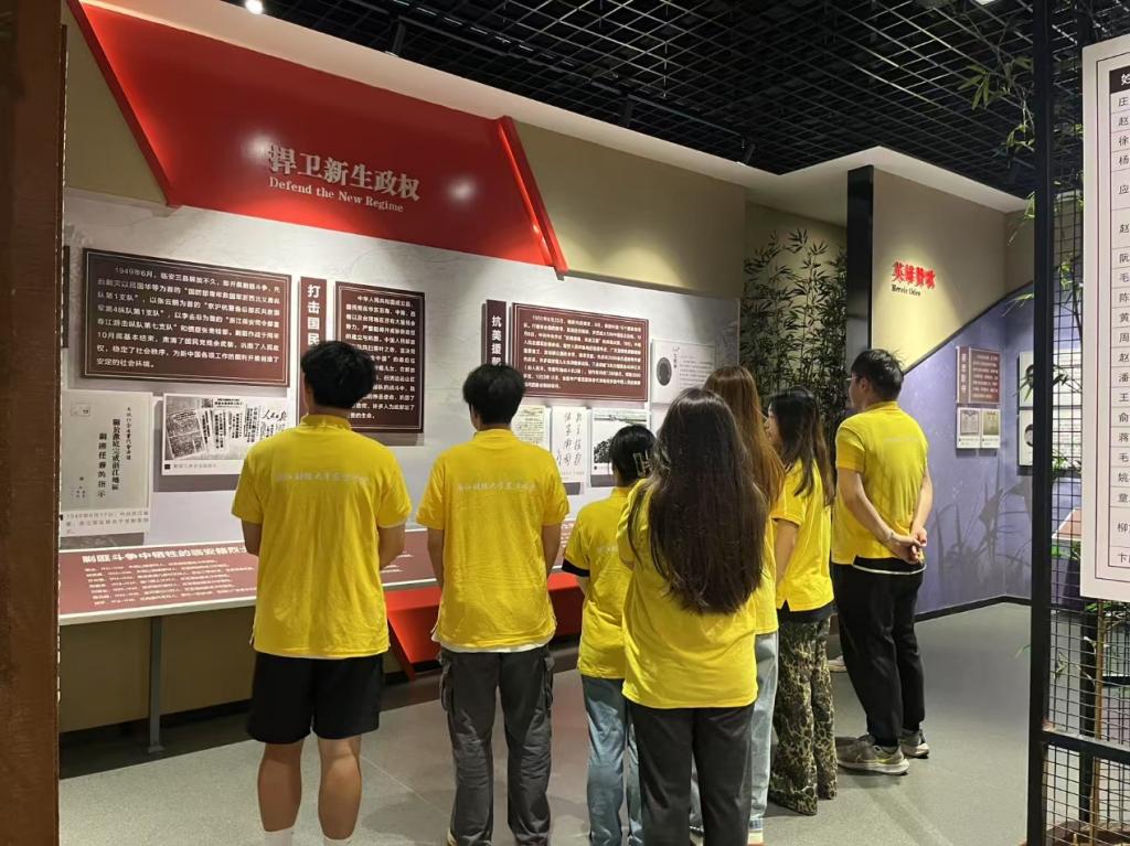 土地革命时期展区,成员们驻足凝视着当年革命者使用过的简陋武器、破旧的衣物以及手写的革命传单。抗日战争时期展区,一幅幅记录着战火纷飞岁月的照片震撼着众人的心灵。解放战争时期展区则展现了临安迎来解放的光辉历程。改革开放时期展区,实践团成员们看到了临安烈士精神在新时代的传承与延续。
