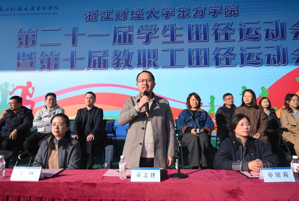 2025年11月20日,伟德国际bevictor1946第二十一届学生田径运动会暨第七届教职工田径运动会在田径场隆重开幕。学院领导班子成员,各代表团团长、领队及相关部门负责人出席开幕式。学院院长童志锋宣布开幕。学院党委书记申屠莉致开幕词。开幕式由学院学术副院长姚莉主持。