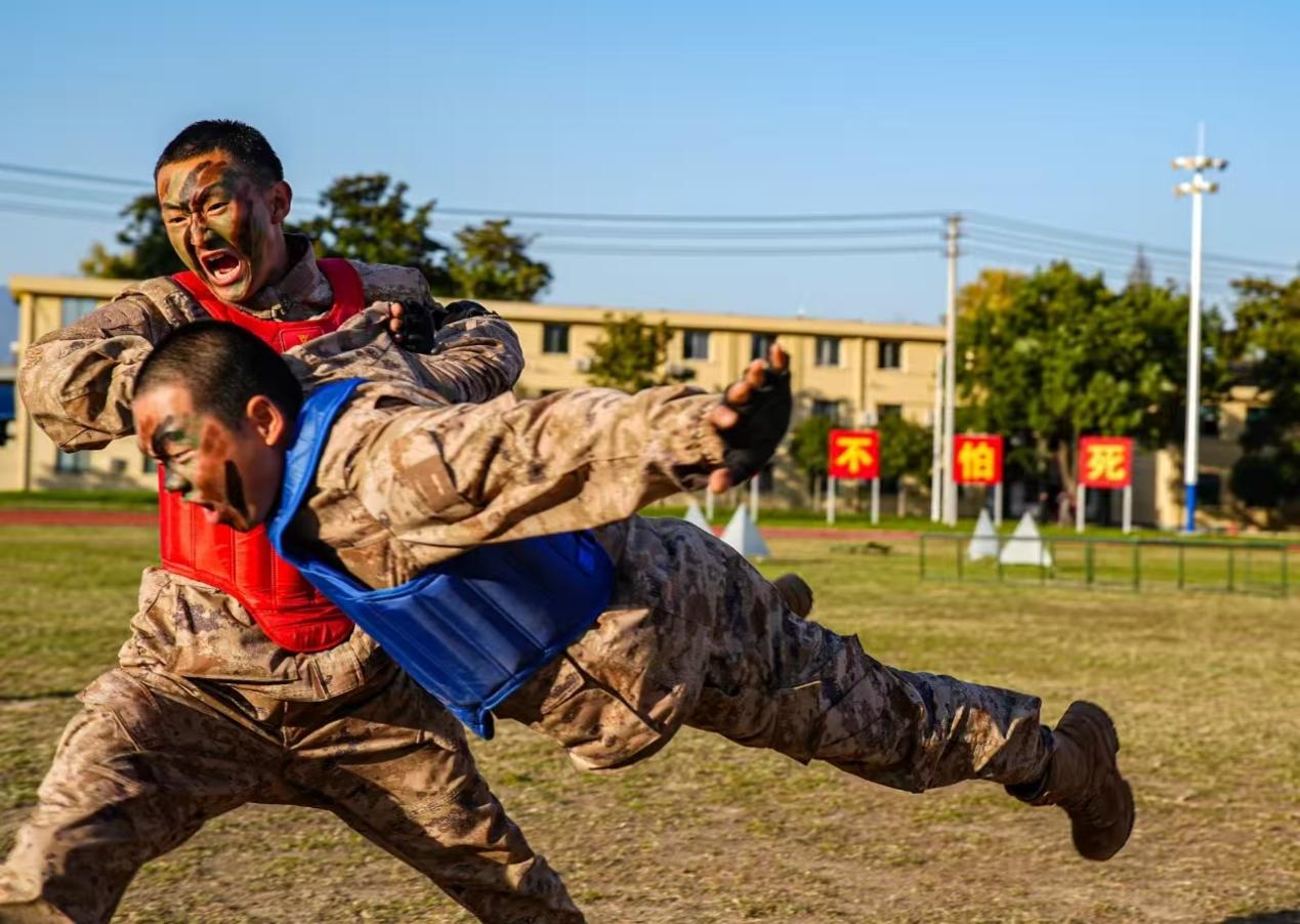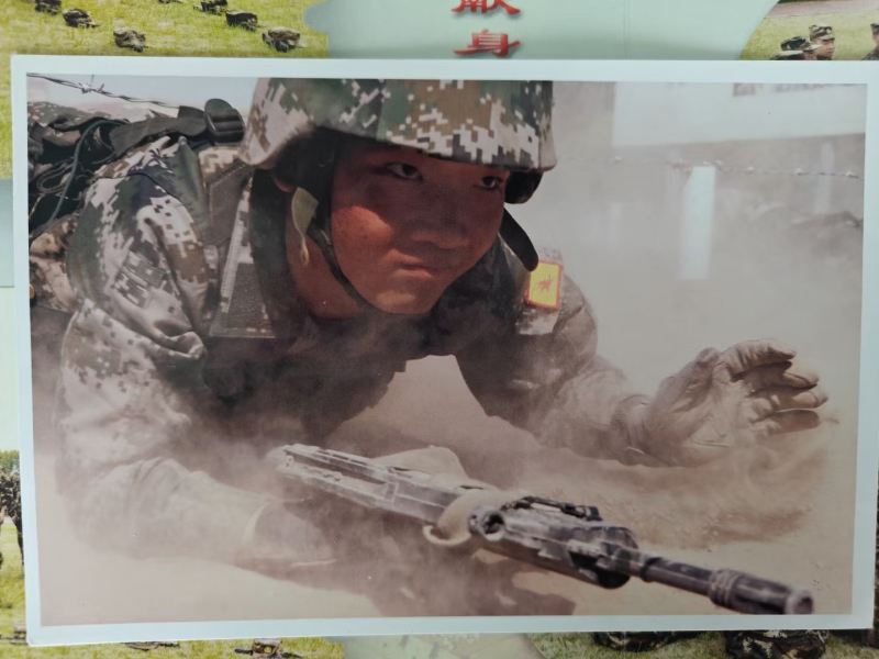 这张照片记录着我进行战术训练(低姿匍匐)时的样子。至今记得,新疆的土地满是砂石,坚硬得硌人。一开始,我确实有过胆怯和退缩的念头,但每当想起革命前辈们在枪林弹雨中冲锋陷阵、在艰苦卓绝中坚守信念的模样,那份犹豫便烟消云散了,心里只剩下对胜利最滚烫的渴望。