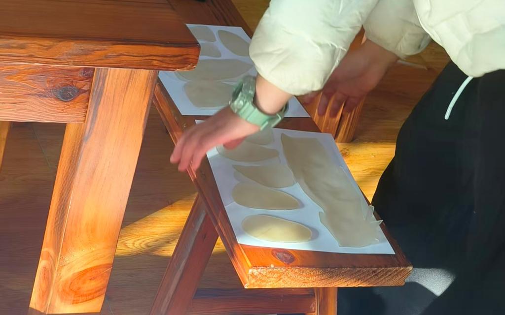 清洗后的皮影部件被整齐置于通风处自然阴干,同学们细心调整摆放角度,避免暴晒变形。正如非遗传承需要代代守护、久久为功,阴干的过程既是时间的沉淀,更是校地共建成果的积累。阳光下排列整齐的皮影构件,见证着创意向实物的跨越,也预示着千年非遗的新生力量。