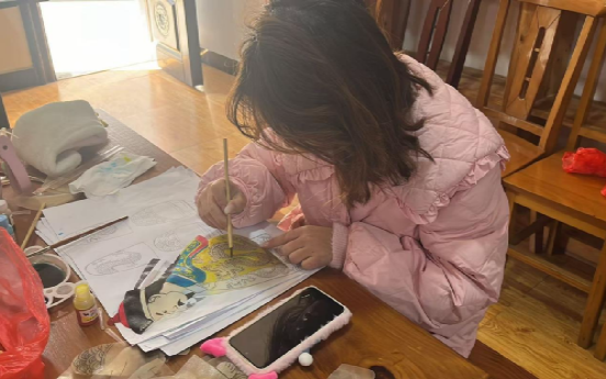 活动伊始,指导老师化身 “非遗传承人”,将皮影勾线与涂色的古法技艺娓娓道来。“单线平涂需流畅,形神兼备方为上”,老师细述勾线的技法精髓 —— 既要贴合造型肌理,勾勒出人物的灵动神韵;又要坚守传统范式,让每一笔都饱含古韵。涂色环节更是暗藏玄机,选用不易褪色的专业颜料,既要遵循 “色彩协调、浓淡相宜” 的传统准则,更要恪守 “双面涂色” 的古法工艺,唯有正反两面色泽均匀、无漏无错,才能让影偶在灯光下绽放饱满鲜活的光彩。