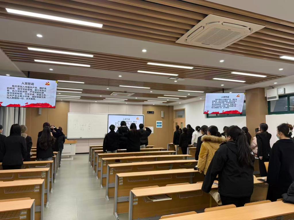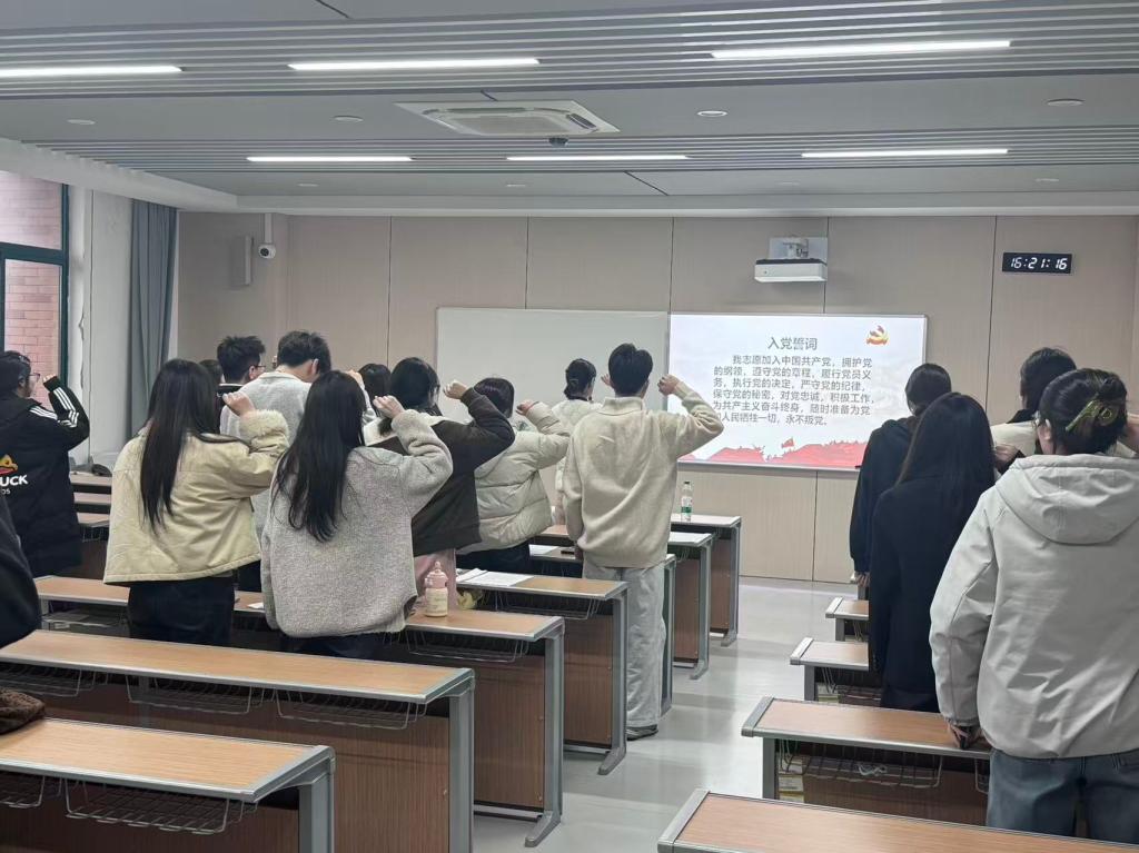 高欣暄等32名发展对象依次上台宣读《入党志愿书》,从思想政治、学习成绩、工作贡献、群众基础、作风纪律等方面,详细汇报了自成为入党积极分子以来的成长历程、收获感悟及存在不足,深刻表达了对加入中国共产党的坚定渴望和为党和人民事业奉献青春的决心。