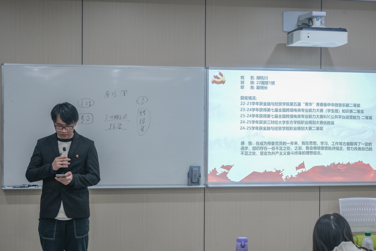 周嘉晨等32名预备党员依次上台宣读《转正申请书》,从思想、学习、工作及生活等方面向党组织汇报了具体情况,也对自身的缺点和不足提出了进一步改正的计划与决心。