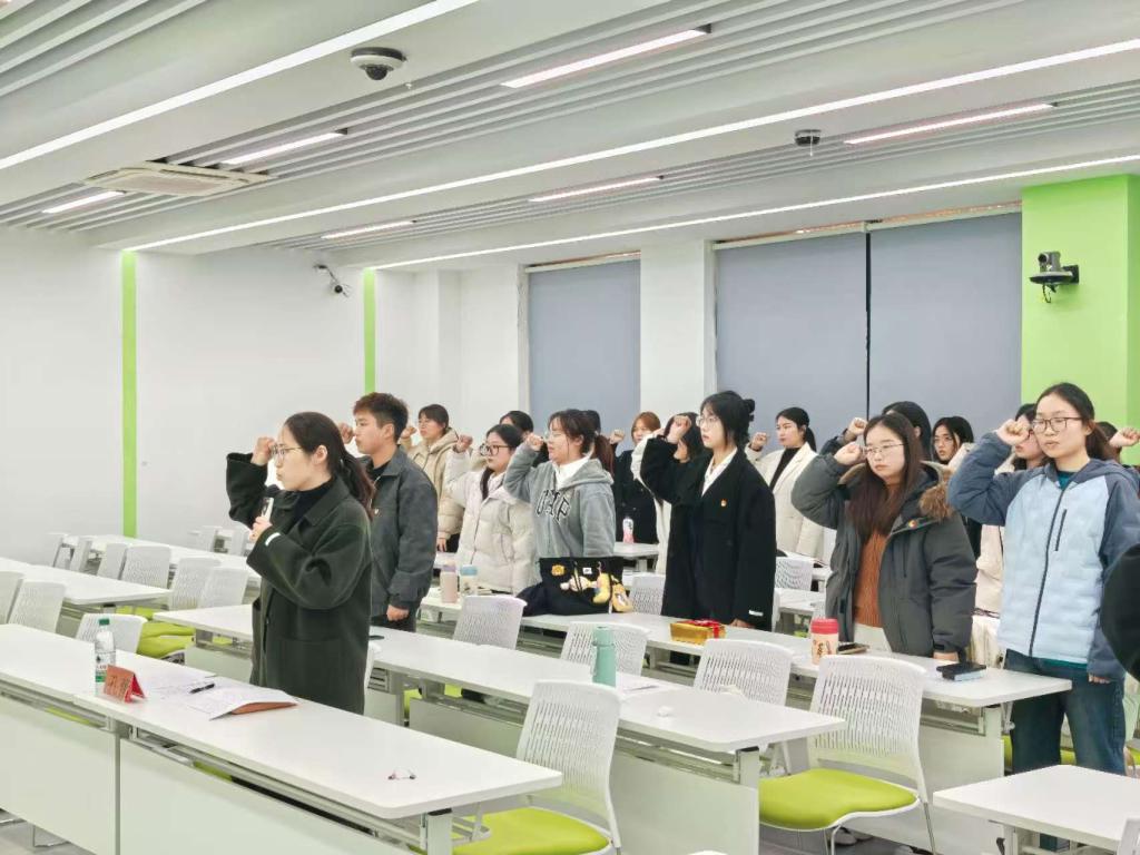 会议结束之际,全体党员、预备党员起立进行入党宣誓。