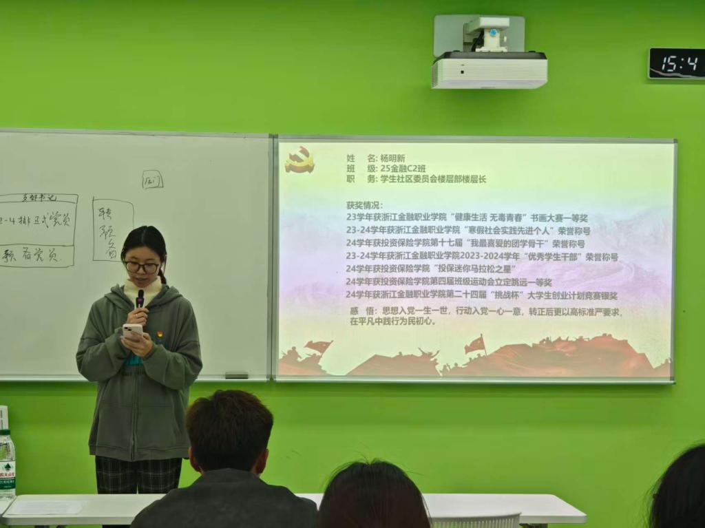 为进一步壮大党员队伍,凝聚青年学生中的先进力量,筑牢基层党组织的战斗堡垒,2025年12月10日金融与经贸学院各学生党支部召开了学生党员发展大会,主要内容是讨论考察发展对象,各支部正式党员、预备党员、发展对象参与会议。