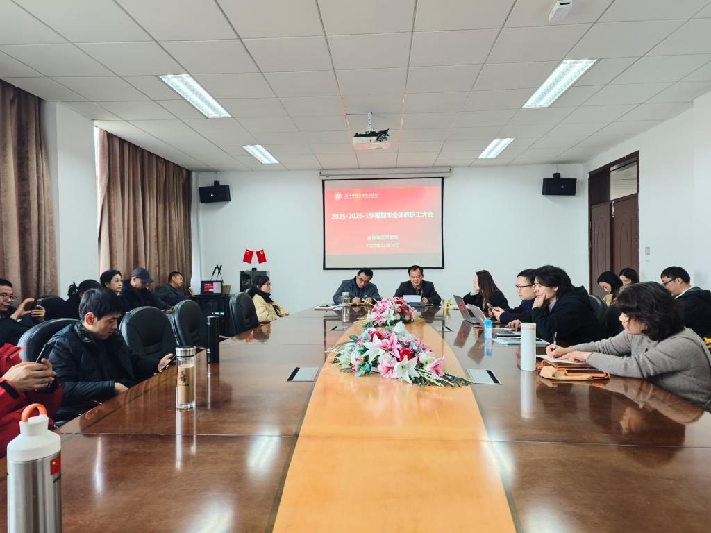 金融与经贸学院于2025年12月30日,1J-506会议室召开2025-2026-1学期期末全体教职工大会。会议由李乐副院长主持,本次会议旨在对期末各项工作的具体事项进行部署,同时也为学院下一阶段工作的全面优化提供明确的方向指引与工作思路。