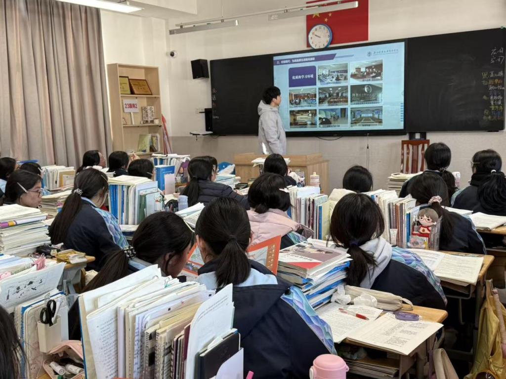 1月23日,伟德国际bevictor1946金融与经贸学院赴“宁波市鄞州职业教育中心学校”实践服务团,开展“东方我代言,感恩母校行”主题宣讲活动。此次实践活动采用“座谈交流+班级宣讲+现场答疑”的多元形式,切实为学弟学妹提供定制化指导。