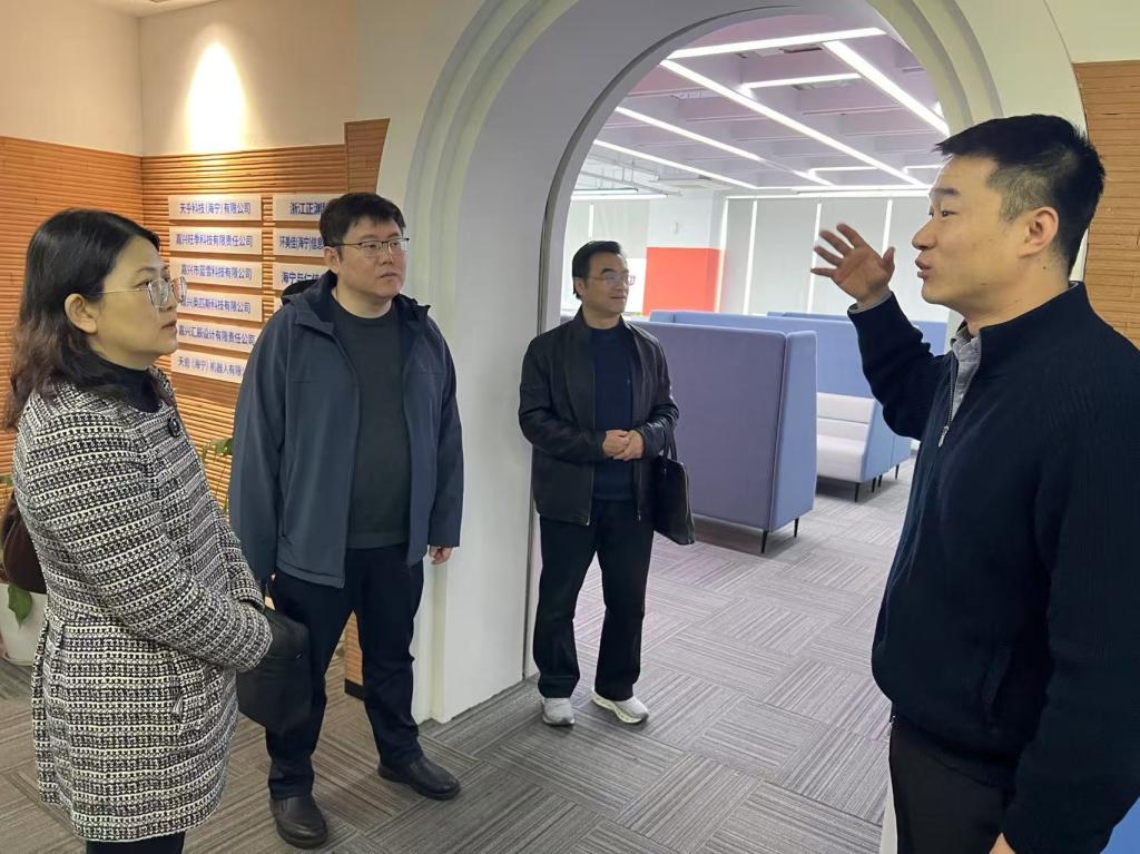 海宁科创金融联合创新中心负责人、海宁市府办吴翔宇主任带领调研组先后参观了浙江海科电子科技有限公司、浙大科技园鹃湖启真孵化器及园区拟上市服务企业。
