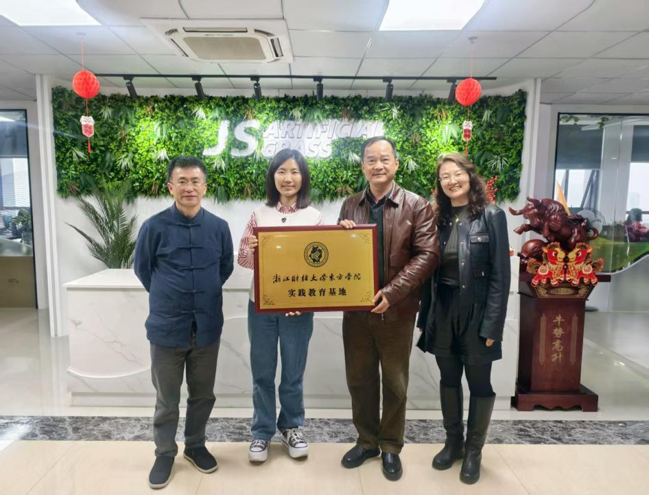 为深入贯彻产教融合发展战略,精准对接海宁产业需求,2026年3月31日下午,金融与经贸学院党总支书记方志勇、副院长李乐及跨境电商系系主任王恩江一行赴海宁江森人造草坪有限公司开展专项调研,双方围绕校企合作具体落地事宜展开深入磋商,期间举行实习基地授牌仪式,进一步明确合作方向、细化合作举措,推动校企协同育人走深走实。