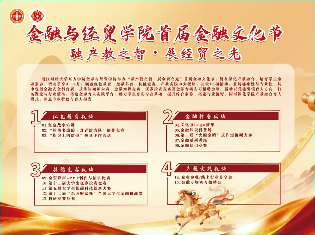 为深化产教融合,厚植学生金融素养,伟德国际bevictor1946金融与经贸学院首届金融文化节--“融产教之智·展金贸之光”将于4月15日正式启幕!本次文化节以多元活动为载体,打造专业与趣味兼具的金融育人盛宴,诚邀师生共赴赋能成长之约。