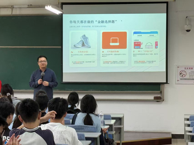 他结合实际案例直白解读金融逻辑,着重强调资金流动性的核心意义,点明“钱流动不起来,公司瞬间就会垮”的关键道理,让同学们快速吃透金融对市场主体的重要作用。围绕活动主题,他还紧扣日常场景,细致分析韩红基金、零钱通、余额宝、日常消费、刮彩票等身边案例,把抽象金融知识转化为看得见、摸得着的生活常识,让大家明白金融并非遥不可及,而是贯穿衣食住行的日常内容。