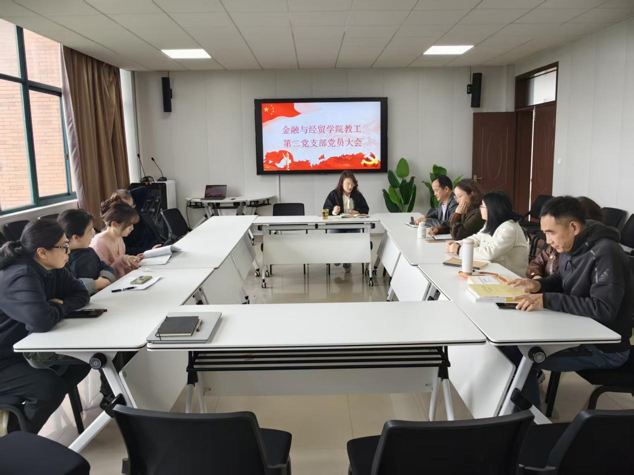 4月14日下午13时,金融与经贸学院教工第二党支部大会在J1-504召开。金融与经贸学院党总支书记方志勇、教工第二党支部全体成员参加会议,会议由教工第二党支部书记李乐主持。