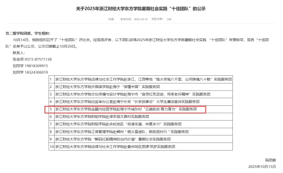 再次向赴海宁市城东村“云端助农·青力青为”实践服务团表示热烈祝贺!期待未来有更多学学子以他们为榜样,满怀热忱投身社会实践,一起为社会的进步与发展注入青春力量!(通讯员:姜宁)