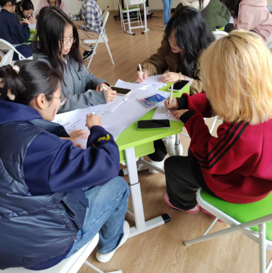 活动在轻松愉快的氛围中拉开帷幕。通过“无家可归”和“大风吹、小风吹”破冰游戏,同学们迅速消除了彼此的陌生感。在“相亲相爱一家人”环节,通过随机分组形成了四个充满活力的小组,各小组通过“滚雪球”式自我介绍增进了相互了解,并创建了各具特色的“社团”。